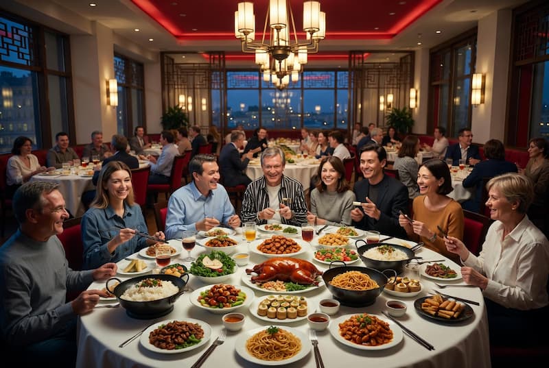 Ключевая особенность китайского застолья заключается в подаче еды в центр стола. Вместо персональных тарелок гости заказывают общие блюда — несколько больших порций мяса, лапши, гарниров — и разделяют их между собой. Такой формат делает обед для группы интерактивным и позволяет каждому попробовать множество вкусов. Технология приготовления ингредиентов на раскаленных сковородах вок обеспечивает экстремально быстрое обслуживание мероприятий даже при полной посадке зала. За счет внушительных граммовок порций сытость достигается очень быстро, что делает такой прием пищи экономически выгодным. В Петербурге подобный подход особенно ценится за существенную экономию времени.